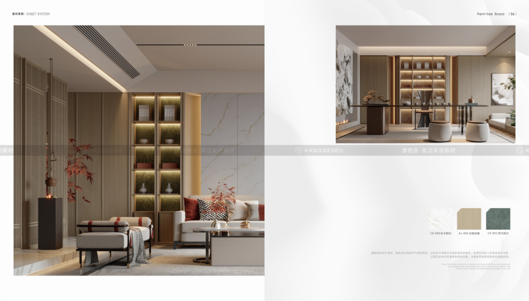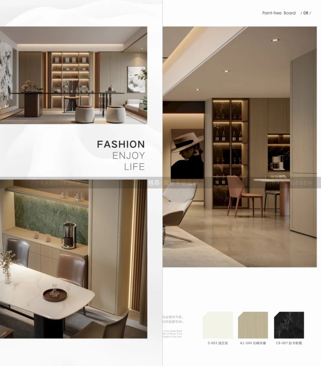 结合年轻消费群体对轻奢、极简风格的偏好,康格森不断开发更具视觉冲击力的表面处理工艺,持续推出个性化纹理和色彩方案,引领高端家居美流。
