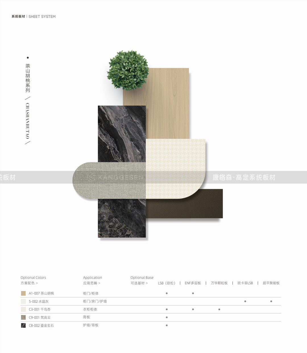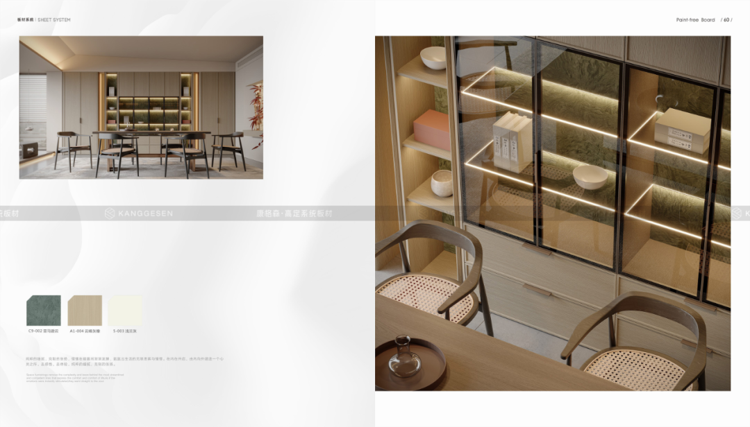 自2024年起,康格森板材选择了一条全案设计落地的道路,“以空间思维,打造年轻人喜欢的轻高定板材。”至今康格森已推出四大类型、六大基材,以多基材、多规格运用、多维度的专业配套,在当今的汹涌跌宕的板材市场牢牢占据一席之地。